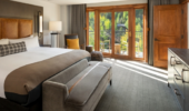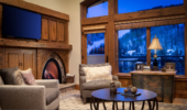 Guest Rooms: These thoughtfully designed rooms feature plush bedding, leather rocking chairs, and upscale amenities like Le Chemin by Byredo bath products, Frette robes, Lavazza coffee, and flat-screen TVs. Many rooms also include balconies with mountain views. Accommodating 2-4 guests and combining queen or king beds with sofa bedding or 2 double beds for groups of four.