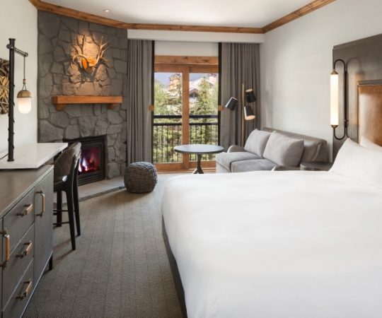 One-bedroom suites: Ideal for those seeking extra space and luxury, suites at The Hythe include features like fireplaces, whirlpool jet bathtubs, and two balconies showcasing spectacular mountain views. Accommodating up to five guests with a king bed and extra sofa bedding this is the ultimate relaxation.