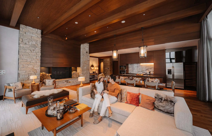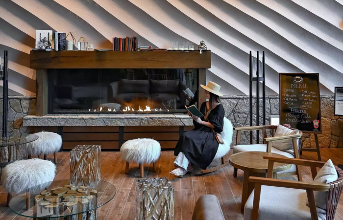 blending alpine styling with soft Japanese touches that create an inviting, cocoon-like atmosphere.